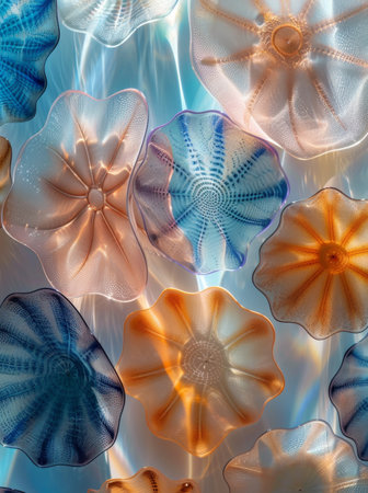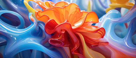 A swirling mass of colorful, translucent glass-like forms, creating an intricately and dynamic abstract composition. High quality illustration