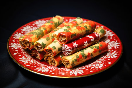 Deep-Fried Beancurd Skin Roll With Shrimp served in dish isolated on table top view of food