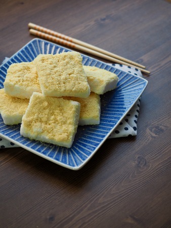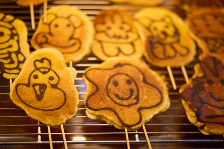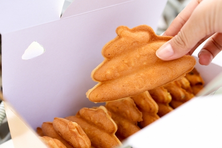 Traditional japanese waffle at street food stall in Kyoto, Japan