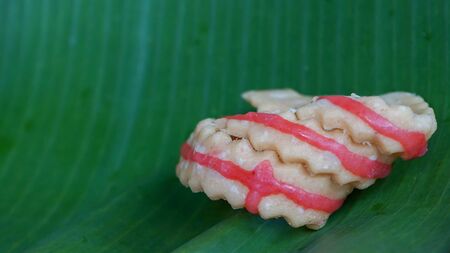 Malaysian traditional cookies called as KUIH SEMPERIT on wooden plate served during Eid Fitri