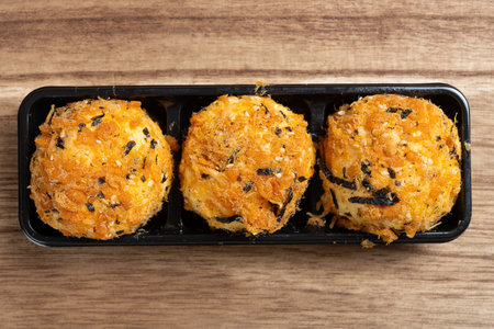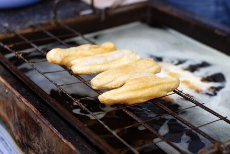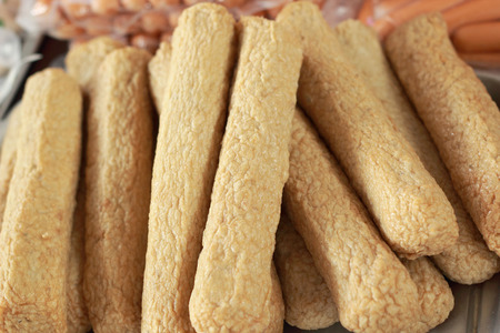 Chicken nuggets on a street food stall in Bangkok, Thailand.