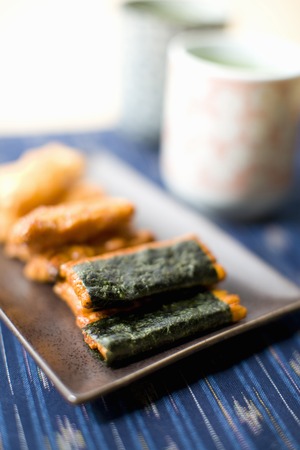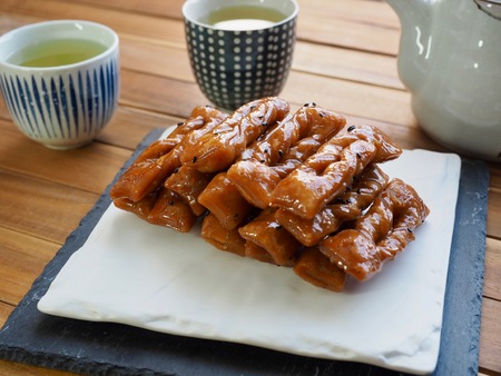 Korean traditional sweets Yakgwa and green tea, Honey Cookie
