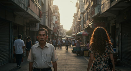 modern mature Asian woman walking on the street at Nantou, Taiwan, Asia