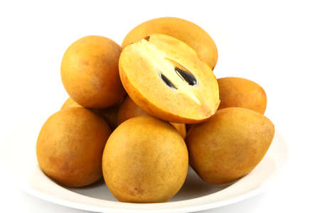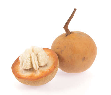 Sapodilla fruit on white background for healthy. Sapodilla fruit come from thailand it for prevent cancer, constipation and dehydration.