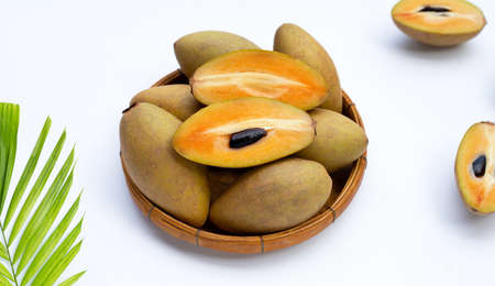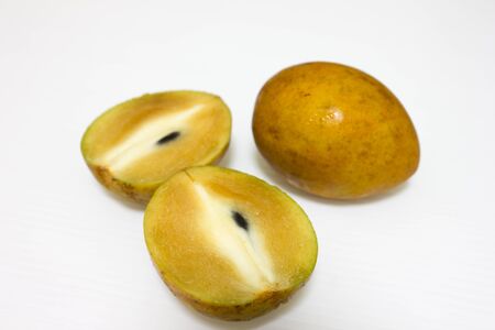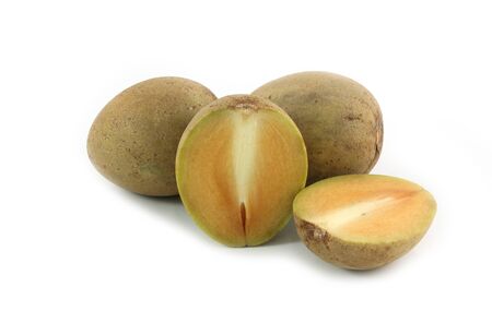 Fresh, organic, chemical-free sapodilla, sweet and appetizing taste, isolated on white background.