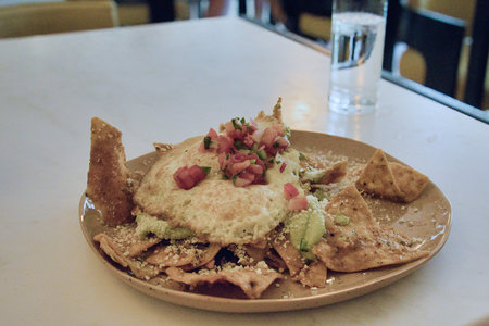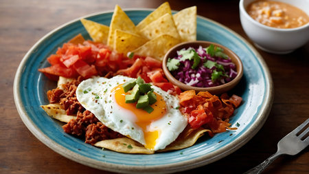 Homemade Mexican Chilaquiles for Breakfast with Egg and Avocado