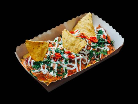 chilaquiles mexican spicy food, nachos, chicken and cheese mexico