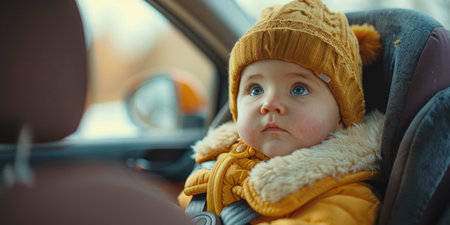 Adorable Toddler in a Car Seat Looking at Parent in Natural Light.