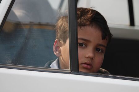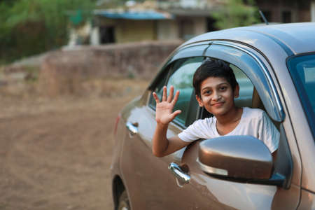 Cute Indian Child waving from car window