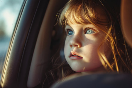 Dreamy Child Gazing Out of a Car Window