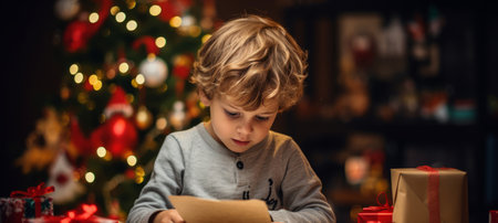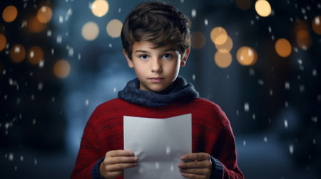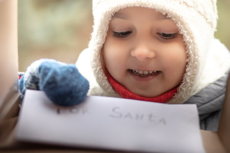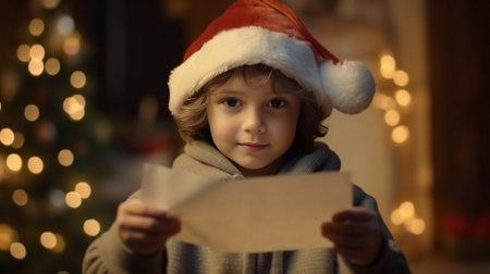 A boy holding a letter for Santa Claus