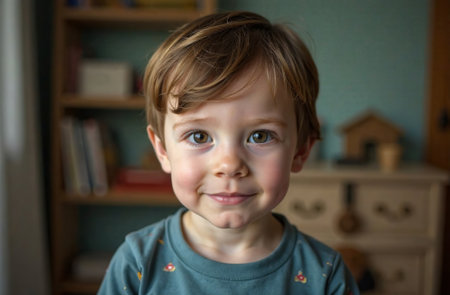 AI Generative Portrait of little boy in the children's room, happy childhood