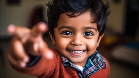 Closeup portrait of a cute indian boy pointing at the camera