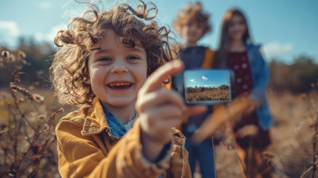 A child taking a picture of herself with her phone, AI