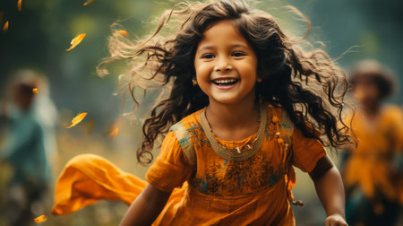 Portrait of Little Girl playing with Colors. Holi concept