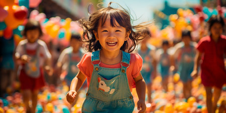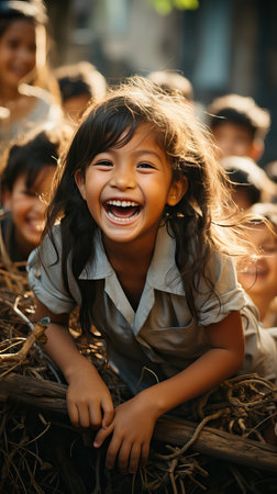 crowd of laughing children on a summer day is heartwarming and represents the pure joy and carefree spirit of childhood. AI Generative AI