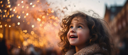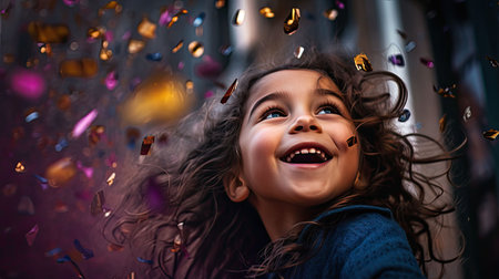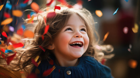 Little Girl With Curly Hair Smiling Surrounded by Confetti