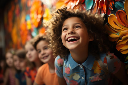 Cheerful children enjoying fun and laughter indoors with friendship and togetherness generated by artificial intelligence