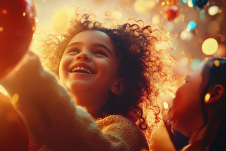 Joyful children celebrate with balloons and sparkling lights creating a vibrant atmosphere of fun.