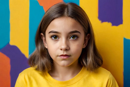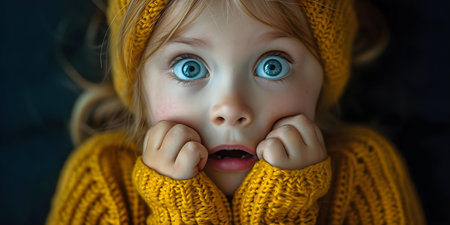 Curious child with wide eyes on yellow backdrop