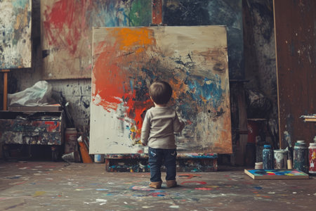 Little boy painting on canvas in studio