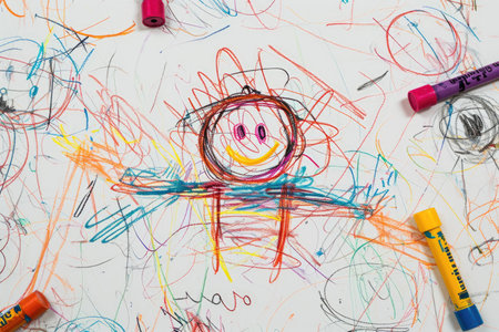 Children express their creativity with colorful crayon sketches on a table, showcasing their imaginative doodles during a joyful afternoon.