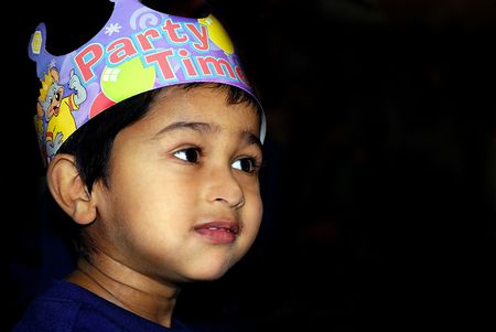 An handsome indian kid having fun at a birthday party