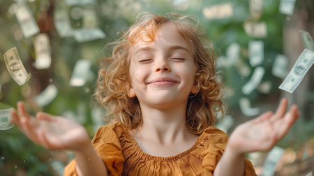 Happy Young Girl Catching Money in Nature