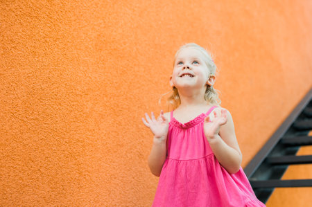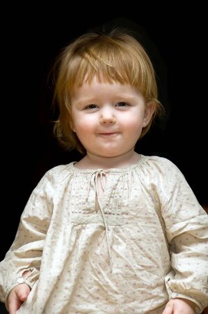 Happy childhood. Lovely little child girl. Portrait of cute sweet adorable baby.