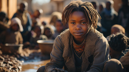 African children. Portrait of african boys looking at camera. Poverty in Africa concept. Created with Generative AI
