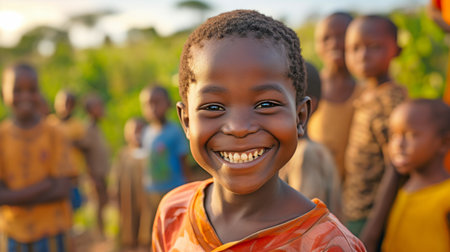Joyful african children discover clean drinking water in rural village amidst drought and poverty