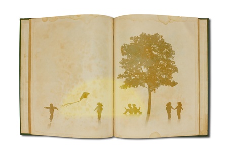Black and white top view open book on the lawn. An open notebook on the grass free space for text.