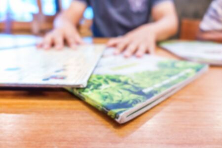 Customer see menu at restaurant blur background with bokeh, Blurred background.