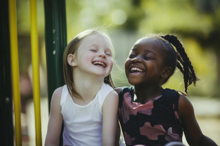 Group of children laughing and playing joyfully in a park on a sunny day, Fostering a sense of belonging and inclusion