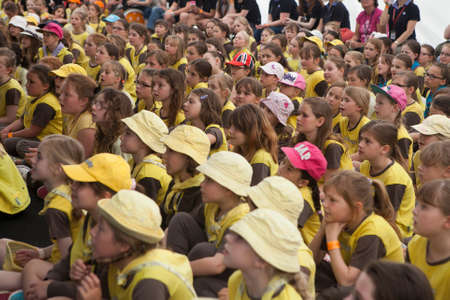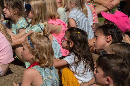 london, england, 05/05/2018 A group of happy smiling children in a crowd having fun. School children laughing and giggling and having the best times with entertainment.
