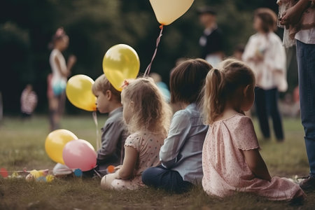 Kids birthday party at the park on a sunny day, generative ai