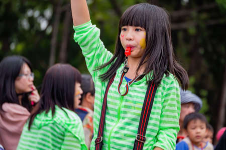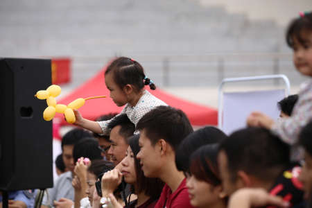 cultural of China as school kids participate in a festive celebration. Traditional atmosphere, vibrant decorations.