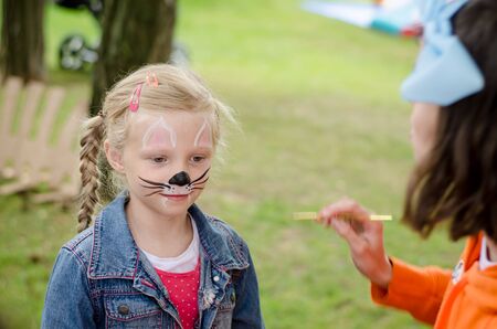 little lovely girl with mouse face painting portrait