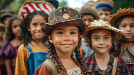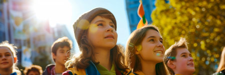 Capturing the Vibrant and Festive Atmosphere of a Children s Parade with Colorful Costumes Balloons and a Lively Crowd Celebrating in a Joyful and Cheerful Scene