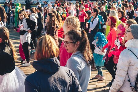 March 8, 2019 Minsk Belarus Women's Day Race on March 8 Young beautiful girls stand on the street before the race