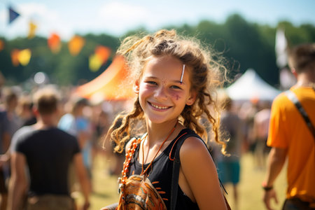 portrait of a young girl enjoying a music concert, created with generative ai