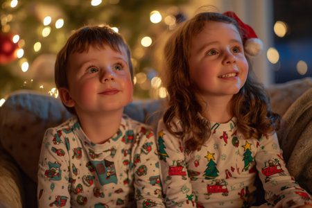 Kids in pajamas eagerly waiting for Santa on Christmas Eve, creating an atmosphere of holiday cheer and magic.