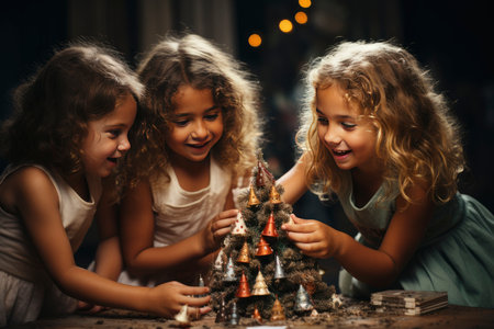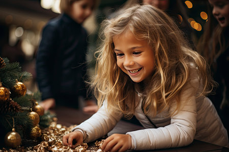 Children joyfully unwrap colorful christmas ornaments, filling the room with warmth and curiosity