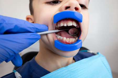 dentist hand open mouth exam kid