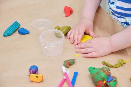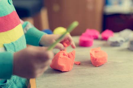 Child playing with clay molding shapes,Children creativity.