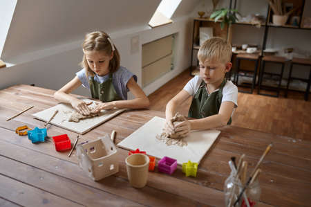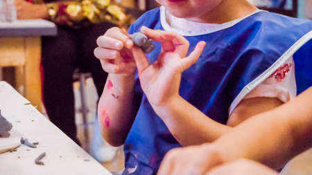 Children work with clay, kids in workshop