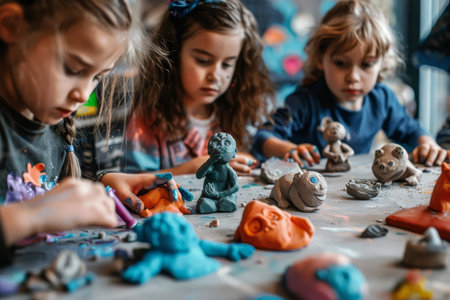 Little girls creating small kids sculptures from clay.