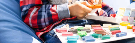 Abstract composition of making something from plasticine (play clay)