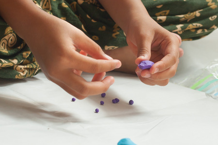 Child hands with plasticine in home at Thailand.