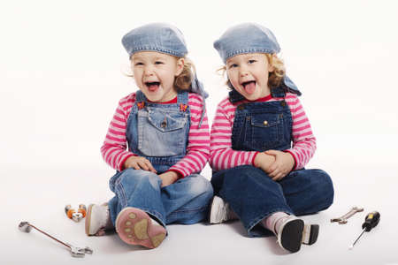 two twin girls are ready to work